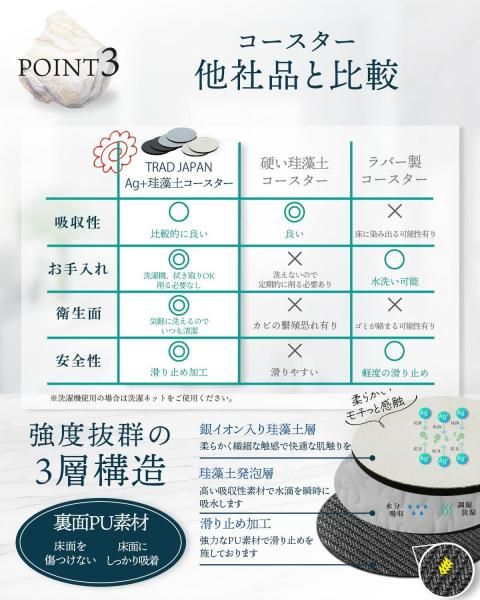 TRAD JAPAN 【=LIFE】銀イオン配合珪藻土コースター2枚入