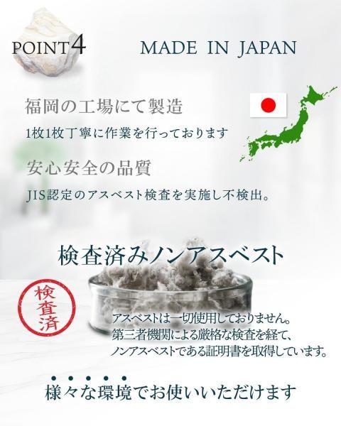 【ノンアスベスト】アスベストは、一切使用しておりません。第三社機関による厳格な検査を経て、ノンアスベストである証明書を取得しています。
